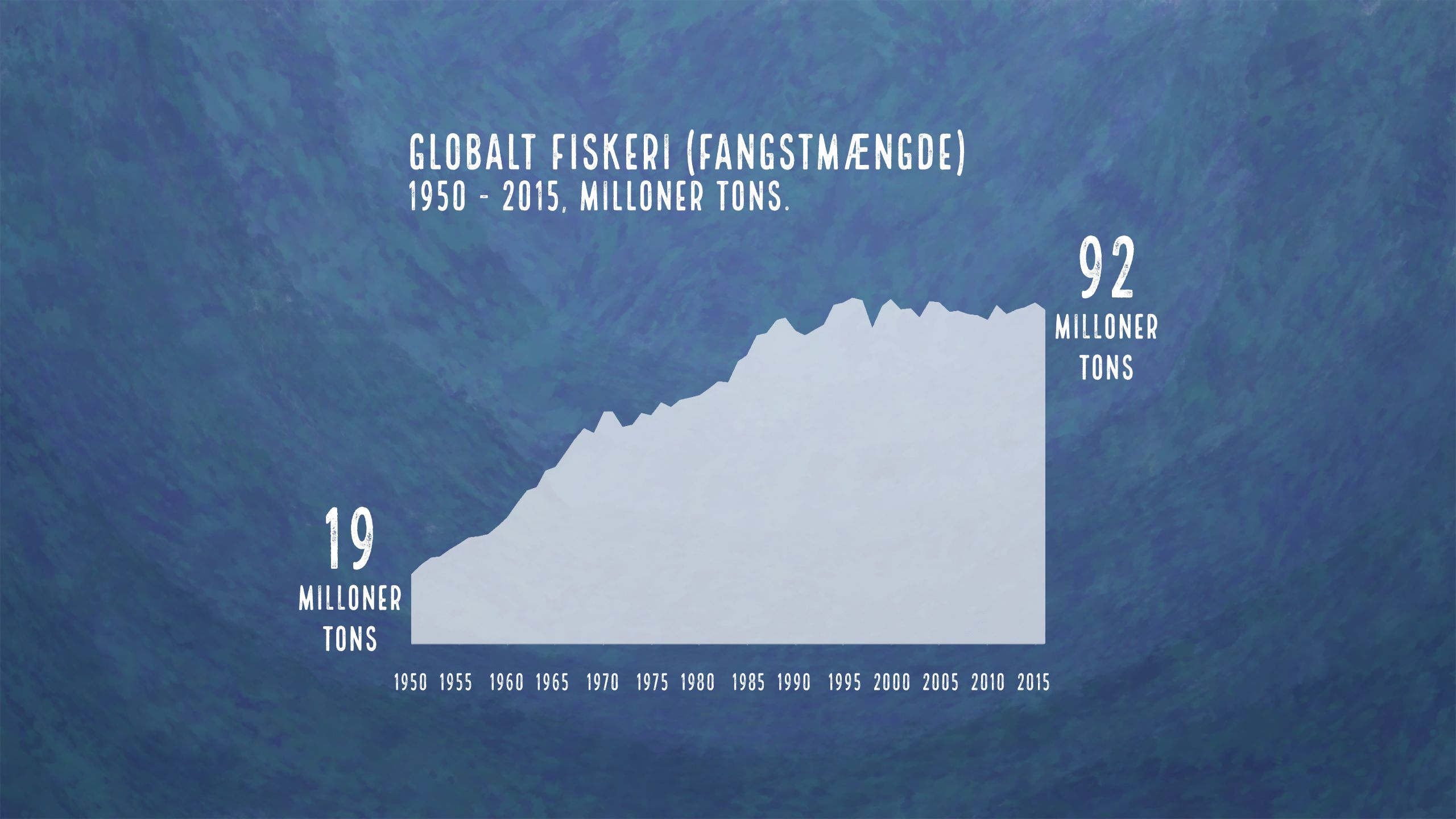 Se på de to grafer nedenfor. Hvad skete der med den globale fiskeproduktion mellem 1950 og 2016? Steg den? Eller faldt den? Med hvor stor en procentdel? Og hvad er der sket med forholdene imellem de bestande, der er overfiskede, bæredygtigt fisket og underfisket? Hvordan tror du, det kan være?